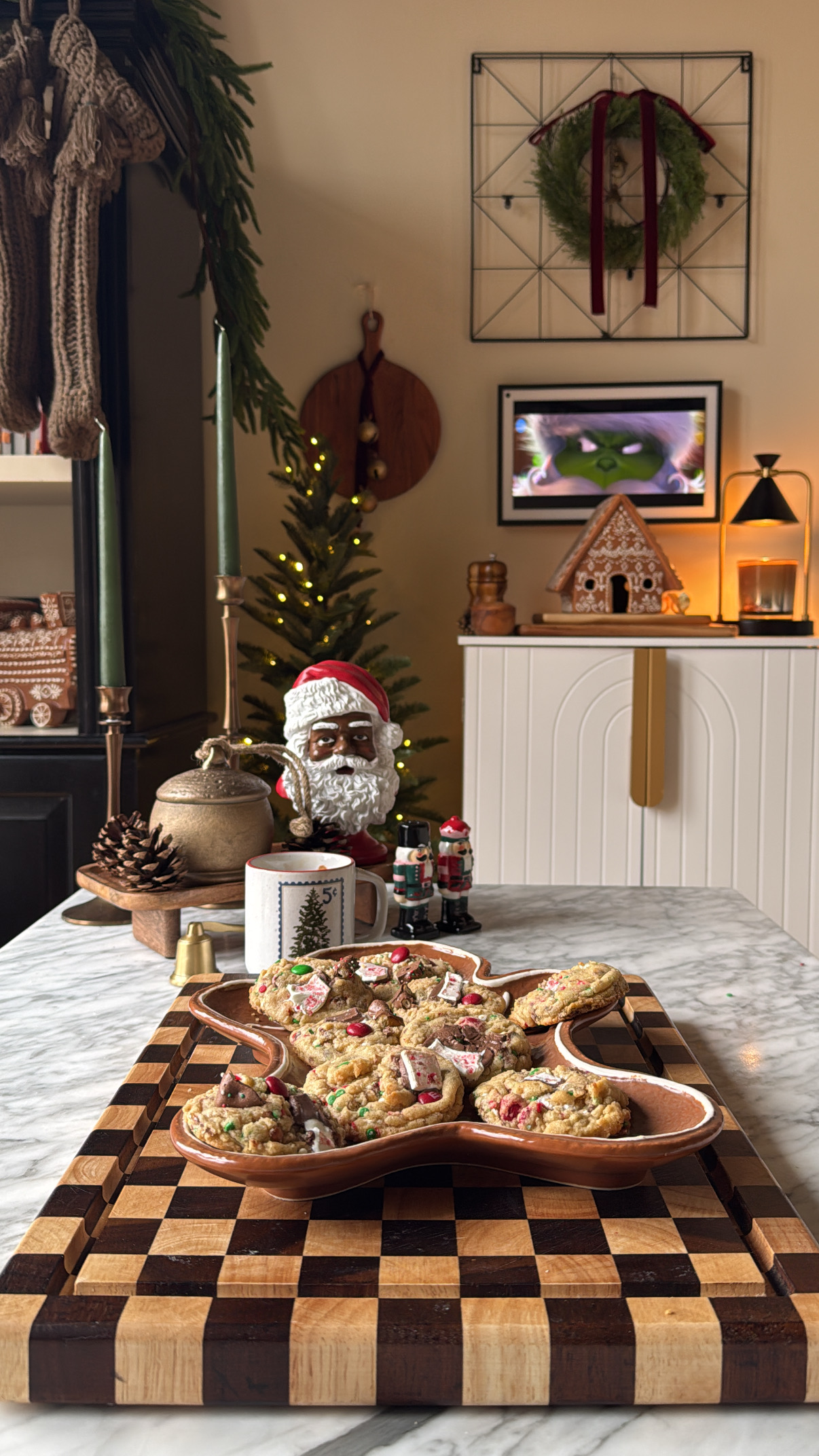 - 1/2 cup green & red M&Ms